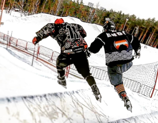 アイスクロスというアイススケートでのレースを主体とする競技を行っています。最高速度80km/hに達するスピードで、4人同時にセクションのある氷上を滑り、1番速い選手が勝つ、シンプルかつ大胆でハードなエクストリームスポーツです。
