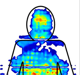 頭部の赤い部分は、体圧が高めにかかっていることを示します。