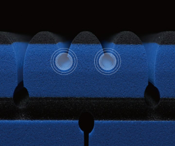 しなやかにボディラインにフィットする柔軟性と、しっかり体を支える硬度、寝返りしやすい高弾力性。そのすべてを兼ね備えた緻密なプロダクト[エアーSX]は、新たな調整スリットと、両サイドのエッジを強化したカッティングにより、眠りのフォームを繊細かつタフにサポート。横向きでの寝心地もより快適に、眠りの質を更なる高みへ導きます。