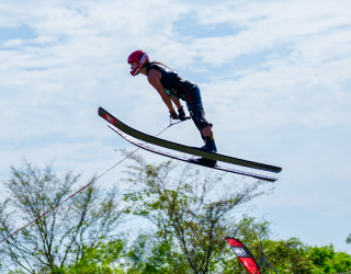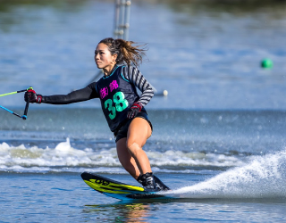 水上スキーをしています。目標は、アジア選手権優勝、全日本選手権連覇です。
